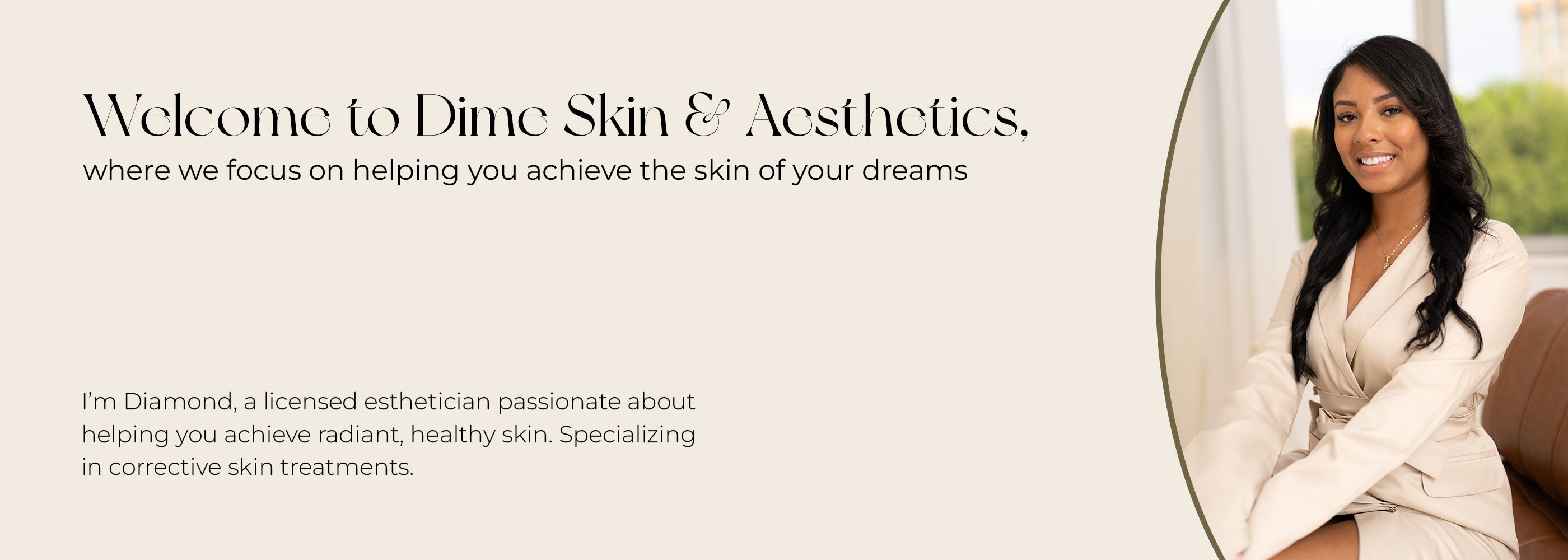 Welcome to Dime Skin & Aesthetics, where we focus on helping you achieve the skin of your dreams. I’m Diamond, a licensed esthetician passionate about helping you achieve radiant, healthy skin. Specializing in corrective skin treatments, I offer personalized custom facials, in-depth skin consultations, and a variety of transformative treatments like chemical peels designed to address your unique skin concerns.